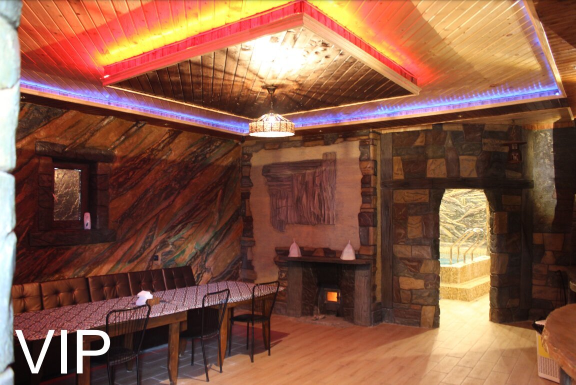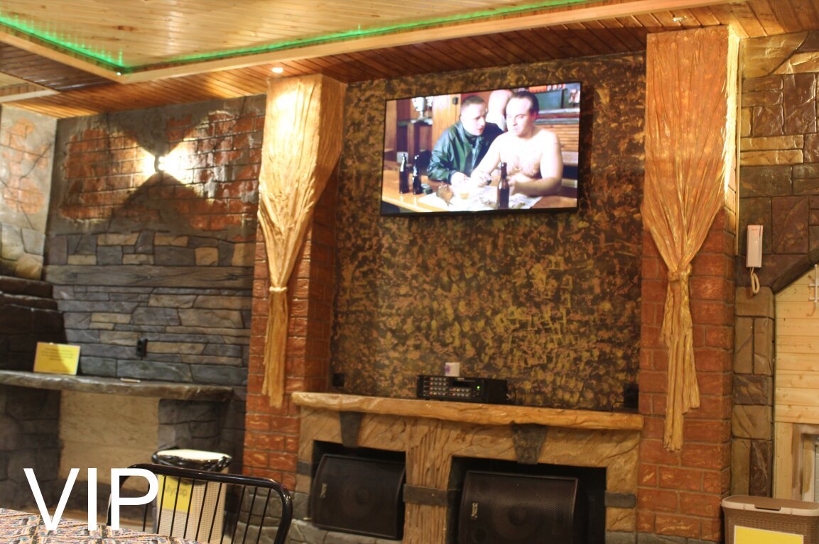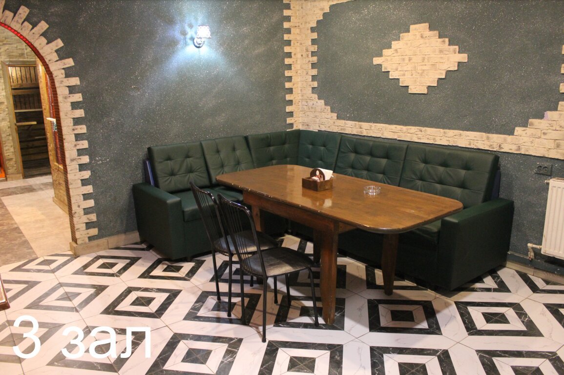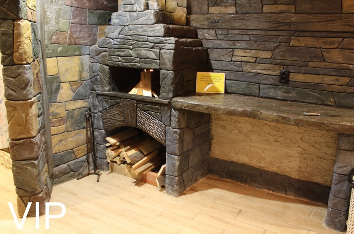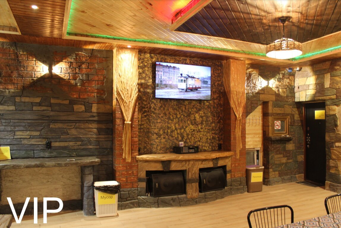 Не хочется в бассейн? Не проблема! Вместо этого можно посидеть в нашей комнате отдыха. Мы постарались создать здесь комфортный, стильный интерьер из максимально натуральных, экологичных материалов, выбрать мебель, которая будет одновременно удобной и эстетичной. Надеемся, что он придется вам по душе! Для создания настроения у нас есть кальян, камин и караоке. Также у нас работает бар, где вы можете заказать блюда русской кухни, а если нужно, прийти и со своей едой - мы не против! Только не забывайте, что плотная трапеза непосредственно перед посещением парной - это не самая хорошая идея, согласно мнению докторов. А вот после парной - совсем другое дело!