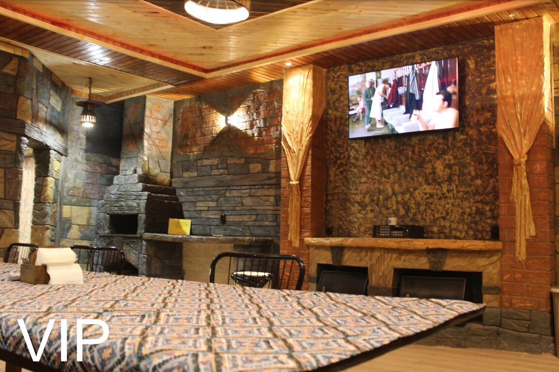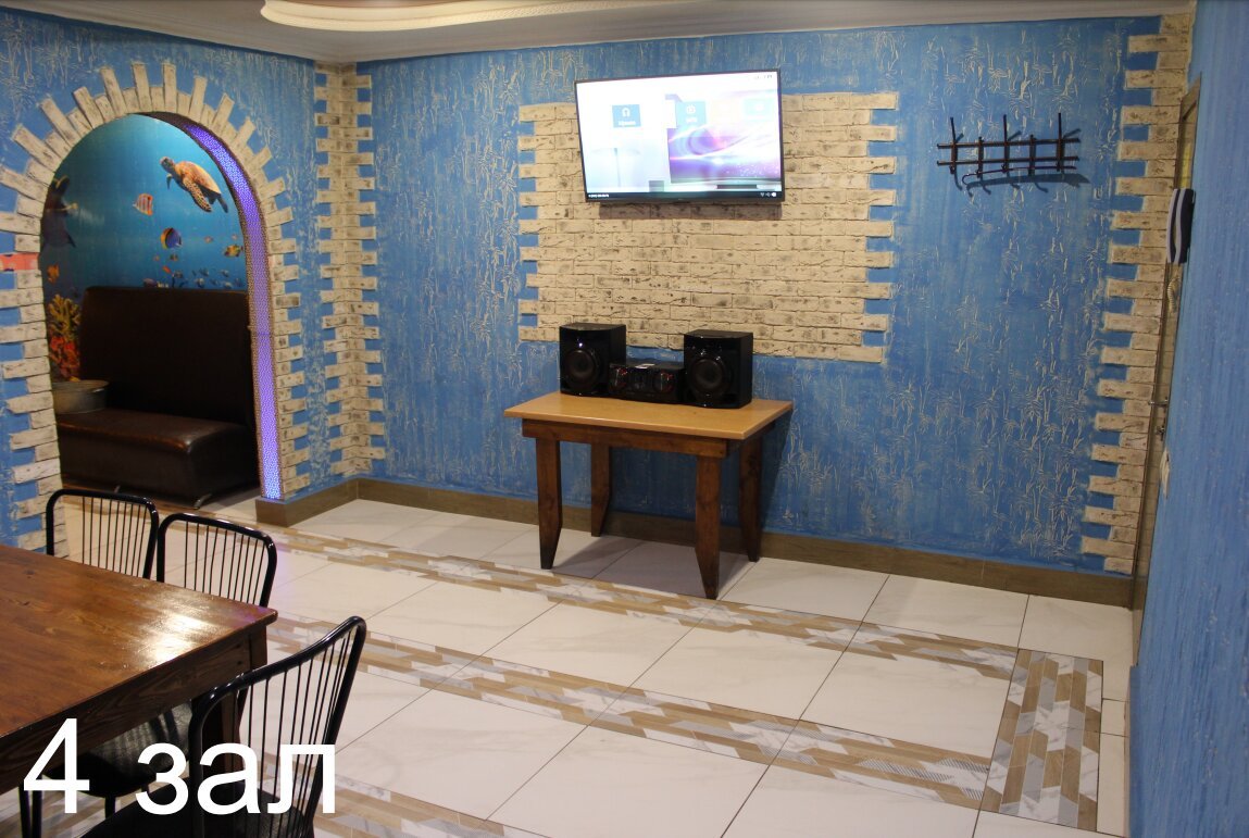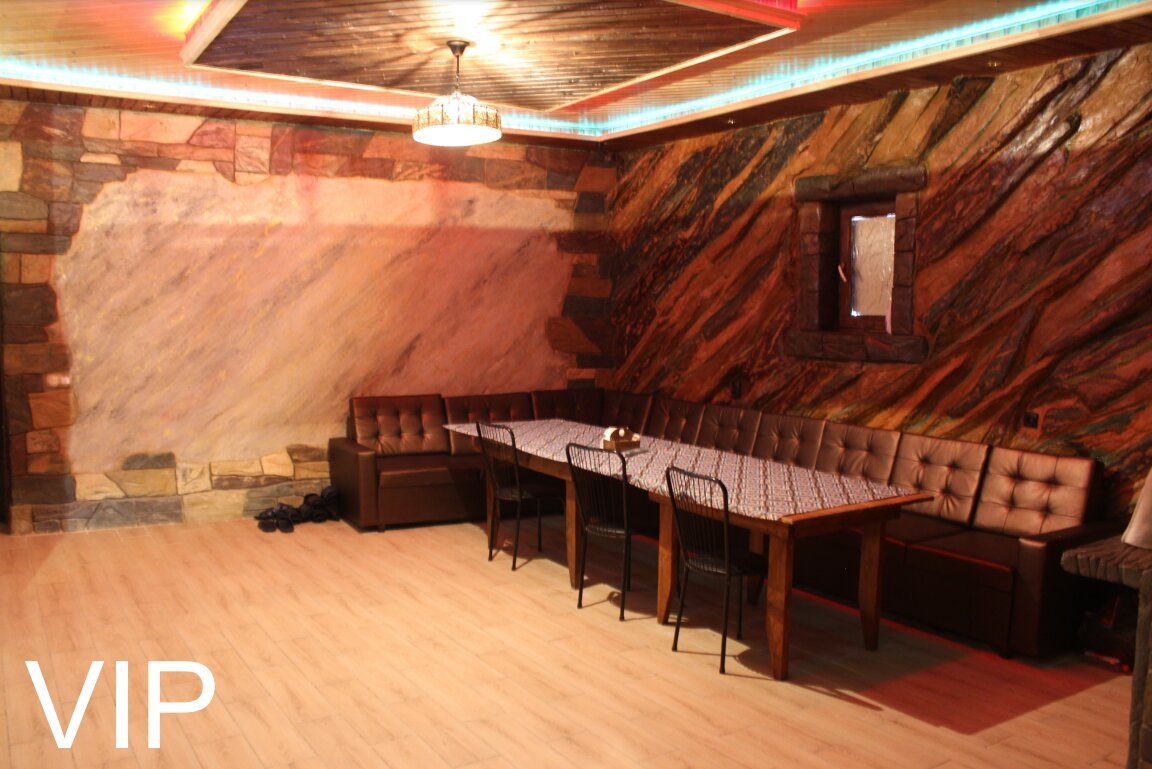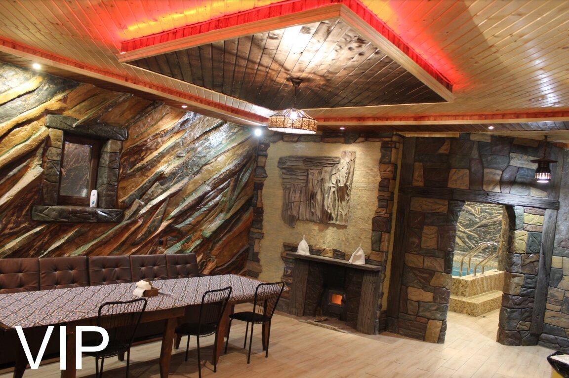 Не хочется в бассейн? Не проблема! Вместо этого можно посидеть в нашей комнате отдыха. Мы постарались создать здесь комфортный, стильный интерьер из максимально натуральных, экологичных материалов, выбрать мебель, которая будет одновременно удобной и эстетичной. Надеемся, что он придется вам по душе! Для создания настроения у нас есть кальян, камин и караоке. Также у нас работает бар, где вы можете заказать блюда русской кухни, а если нужно, прийти и со своей едой - мы не против! Только не забывайте, что плотная трапеза непосредственно перед посещением парной - это не самая хорошая идея, согласно мнению докторов. А вот после парной - совсем другое дело!
